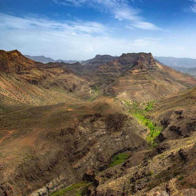 Gran Canaria zeigt einen langen geologischen Werdegang mit alten Basaltserien, starkem Erosionsrelief und jungeren Vulkanfeldern. Die Insel ist berühmt für ihre Reliefenergie: Tiefe Schluchten (Barrancos) schneiden sich vom Hochland zur Kuste, was Wasser, Siedlung und Nutzung historisch stark beeinflusst hat. Einordnung im kanarischen Vulkanrahmen: IGN - Canarias